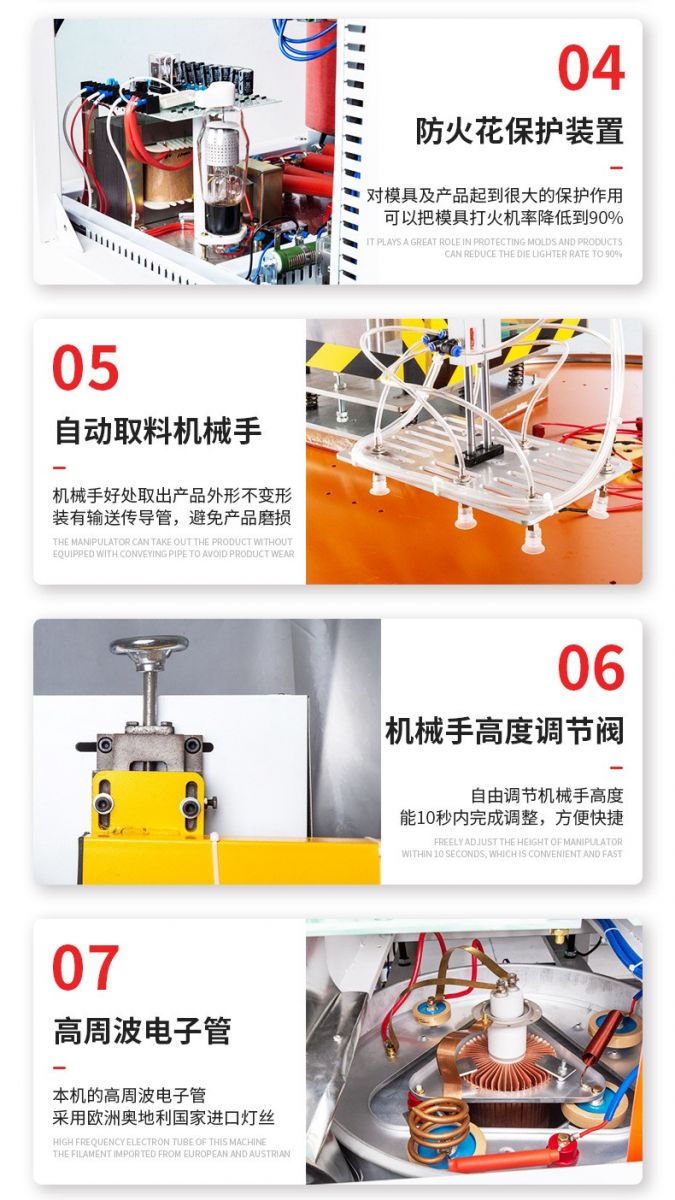 4.全自動(dòng)圓盤(pán)高周波機(jī)裝配振蕩電流調(diào)整設(shè)備,調(diào)整輸出功率大小的同調(diào)器,調(diào)節(jié)簡(jiǎn)單方便,可以根據(jù)產(chǎn)品大小以及材料厚薄設(shè)定所需高頻電流,可以控制全自動(dòng)高頻機(jī)高周波熔接的程度,能保證產(chǎn)品熔接質(zhì)量的均一性,美觀(guān)性。