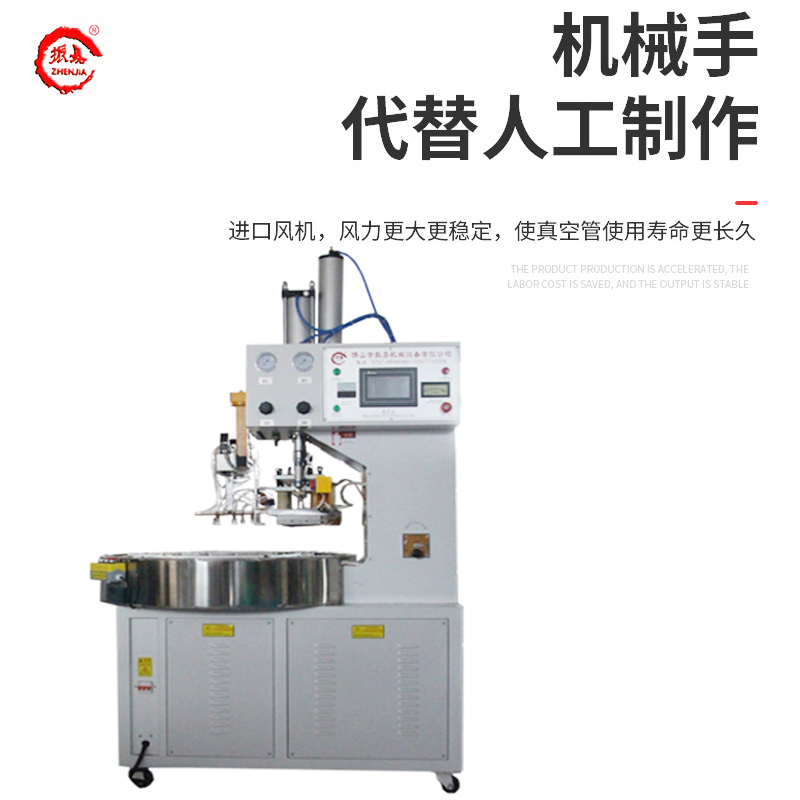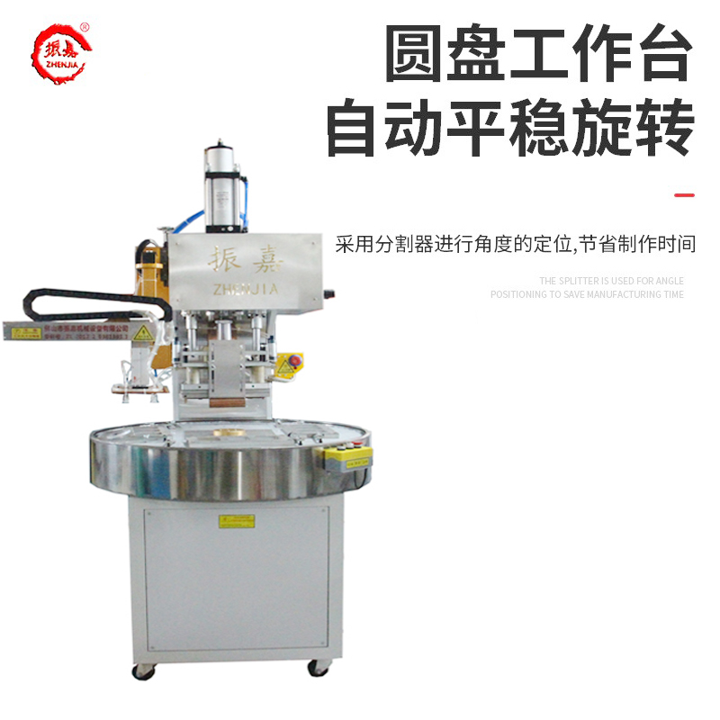 1.全自動(dòng)圓盤(pán)高周波機(jī)結(jié)構(gòu)設(shè)計(jì)為圓盤(pán)式結(jié)構(gòu),可以只需一個(gè)一操作,當(dāng)一個(gè)工位人工取下產(chǎn)品并放置原料時(shí),另一個(gè)工位剛好焊接完成,如此旋轉(zhuǎn)進(jìn)出一個(gè)循環(huán)操作,只需放料,取料由機(jī)械手完成,使人工與機(jī)器做到合理運(yùn)用,要省人力。
