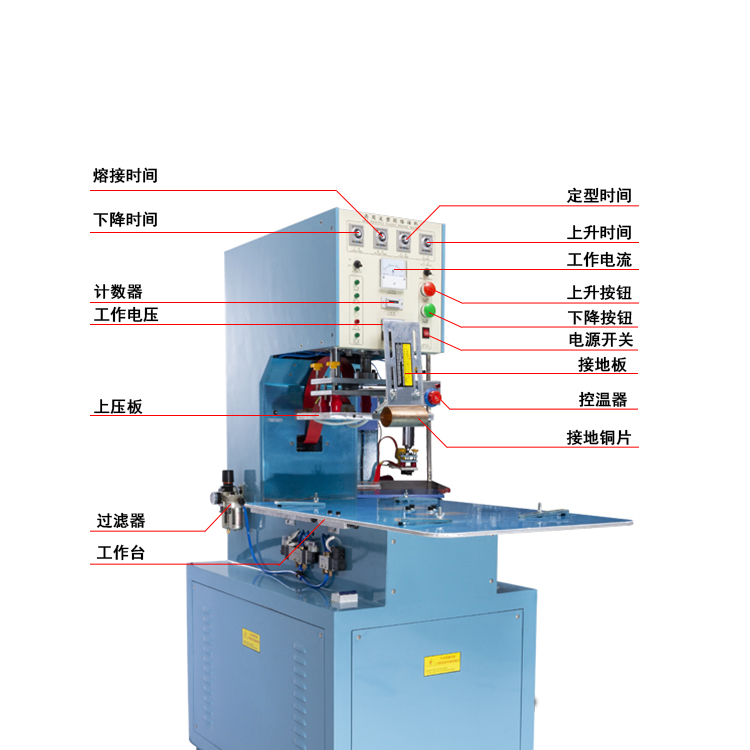 3、熔接時間制:根據(jù)工件大小所需要的熔接時間進行調(diào)節(jié)設(shè)置。工作一段時間后,可適當(dāng)減少熔接時間。