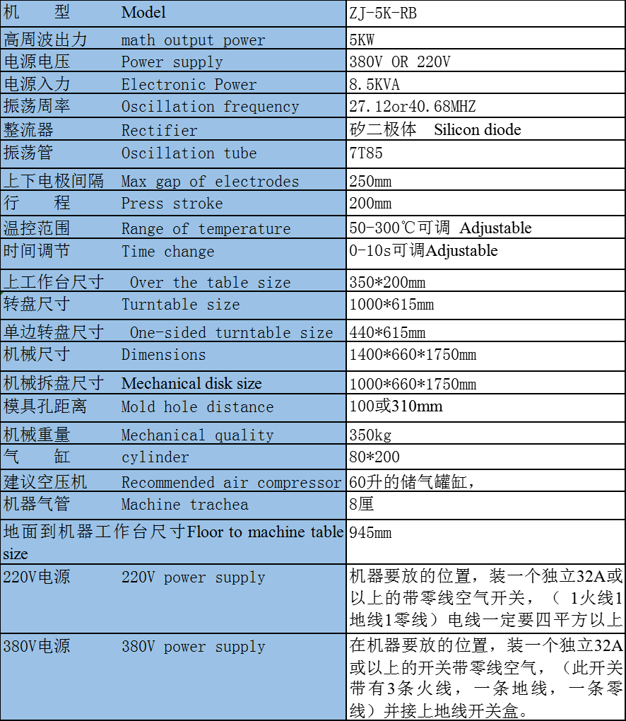 5KW高頻焊接機型號為ZJ-5K-RB,此機裝有進口雙管子防火花保護裝置,對高周波模具及生產(chǎn)產(chǎn)品起到很大的保護作用,是一款兩工位轉(zhuǎn)盤式高周波機,可以單人操作,節(jié)約人工;由振嘉機械設備有限公司高周波生產(chǎn)廠家專業(yè)制造,機器質(zhì)量已通過歐盟CE質(zhì)量出口檢測,ISO9001機器質(zhì)量檢測;并對客戶的樣板提供免費打板打樣,傳授產(chǎn)品生產(chǎn)整過程工序及提供生產(chǎn)方案。