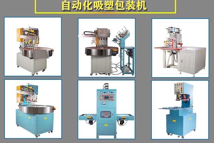 3、其次根據(jù)自己的人手考慮機器的操作模式,有小型吸塑包裝機、圓盤吸塑包裝機、轉(zhuǎn)盤吸塑包裝機、推盤吸塑包裝機、全自動單機械吸塑包裝機、全自動雙機械手吸塑包裝機、自動滑臺高周波同步熔斷包裝機機等,這些根據(jù)實際操作需要的人都不同,由半自動化,自動化,純?nèi)斯げ僮鞣绞健?/span>