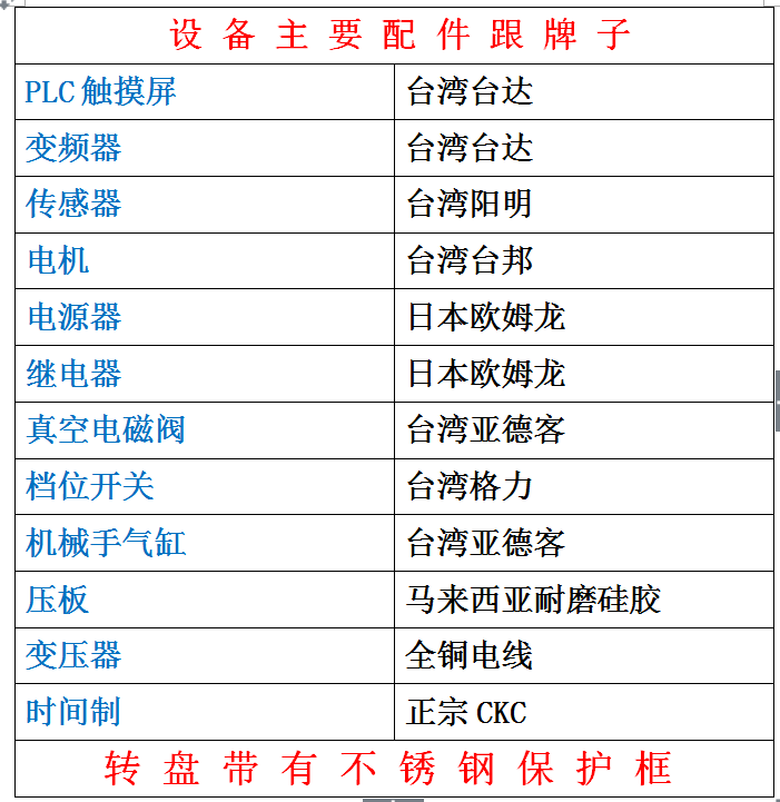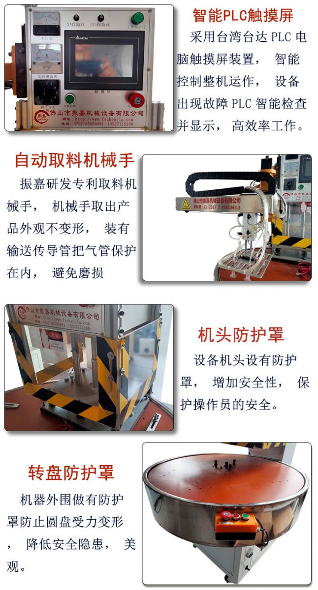 1.自動(dòng)吸塑封口機(jī)操作簡便:只要選擇延時(shí)時(shí)間、加熱時(shí)間與冷卻時(shí)間及加熱電流轉(zhuǎn)換檔位,轉(zhuǎn)盤自動(dòng)旋轉(zhuǎn),人工放材料及產(chǎn)品,壓好產(chǎn)品自動(dòng)轉(zhuǎn)到機(jī)械手位置,機(jī)械手取出產(chǎn)品,機(jī)器的延時(shí)系統(tǒng)、加熱系統(tǒng)及冷卻系統(tǒng)便會(huì)自動(dòng)操作,完成封合過程。