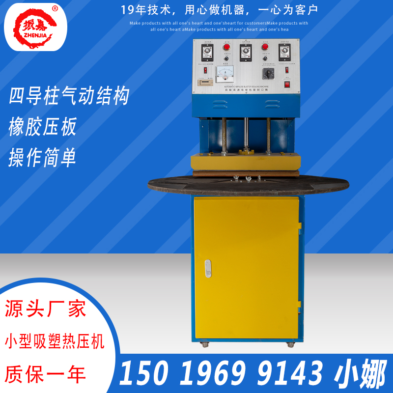 2.小型吸塑熱壓機(jī)工作臺(tái)三個(gè)工位或者二個(gè)工位自選,包裝速度快,生產(chǎn)效率高。