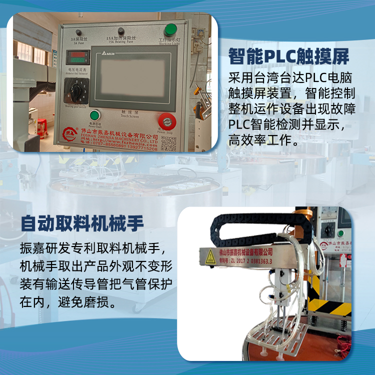 ②機械手自動取料保持吸塑美觀,避免吸塑因受力拉扯而引起的彎曲及變形的問題。機械手采用平行式真空吸盤取料,使吸塑邊緣平整美觀,達(dá)到質(zhì)與量雙提升。