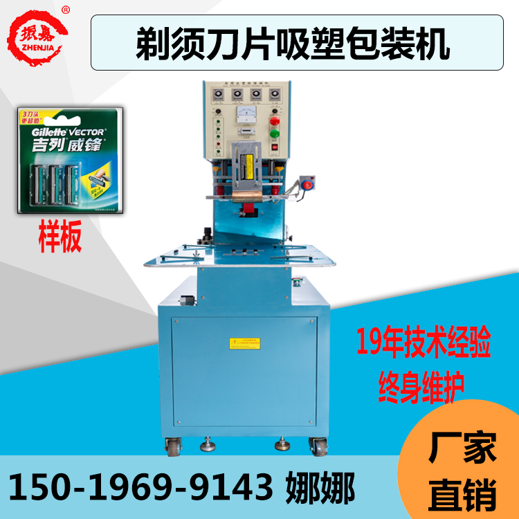 剃須刀片吸塑包裝機(jī)型號(hào)為ZJ-8K-RB,此機(jī)裝有進(jìn)口雙管子防火花保護(hù)裝置,對(duì)高周波模具及生產(chǎn)產(chǎn)品起到很大的保護(hù)作用,是一款兩工位轉(zhuǎn)盤式高周波機(jī),可以單人操作,節(jié)約人工;由振嘉機(jī)械設(shè)備有限公司高周波生產(chǎn)廠家專業(yè)制造,機(jī)器質(zhì)量已通過(guò)歐盟CE質(zhì)量出口檢測(cè),ISO9001機(jī)器質(zhì)量檢測(cè);并對(duì)客戶的樣板提供免費(fèi)打板打樣,傳授產(chǎn)品生產(chǎn)整過(guò)程工序及提供生產(chǎn)方案。