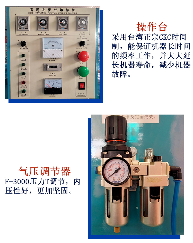3、單頭高周波包裝機設有高周波頻率穩(wěn)定器及高周波屏蔽裝置,將高頻干擾降到最低。