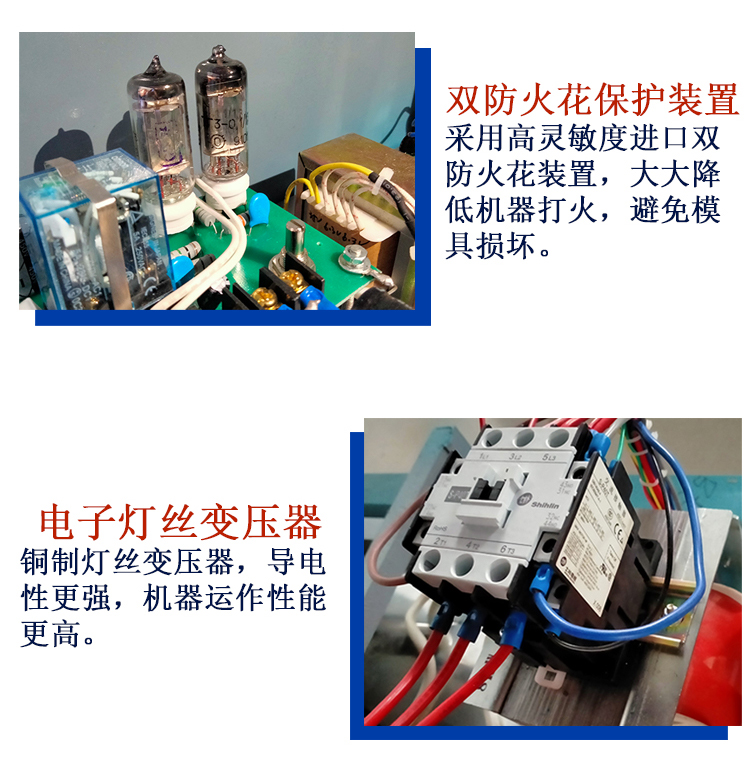 1、單頭高周波包裝機高靈敏度進口雙管火花保護裝置,能有效保護模具及產品之缺損,從而大大減少燒壞模具機率,采用國際大品牌原裝OMROM(歐姆龍)繼電器及臺灣正宗CKC時間制,能保證機器長時間的頻率工作,并大大延長機器壽命,減少機器故障。