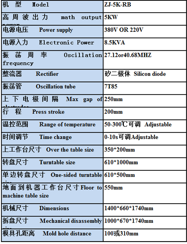 單頭高周波包裝機型號為ZJ-5K-RB,此機裝有進口雙管子防火花保護裝置,對高周波模具及生產產品起到很大的保護作用,是一款兩工位轉盤式高周波機,可以單人操作,節(jié)約人工;由振嘉機械設備有限公司高周波生產廠家專業(yè)制造,機器質量已通過歐盟CE質量出口檢測,ISO9001機器質量檢測;并對客戶的樣板提供免費打板打樣,傳授產品生產整過程工序及提供生產方案。