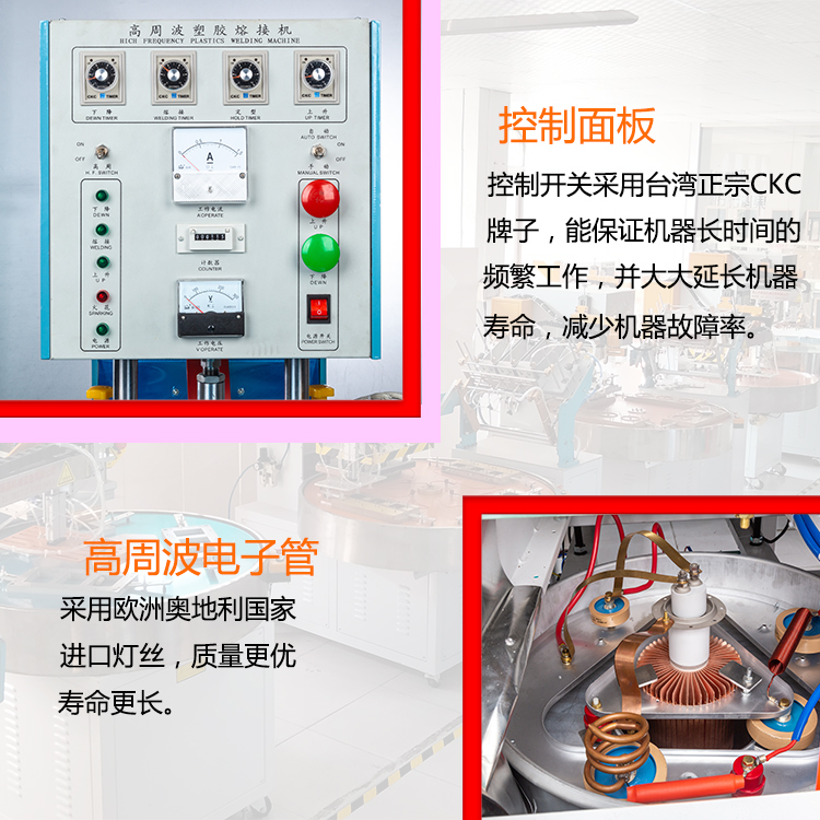 2、奇趣蛋吸塑包裝機(jī)高周波電流調(diào)節(jié)使用無級(jí)電極調(diào)節(jié),簡(jiǎn)單易學(xué)。