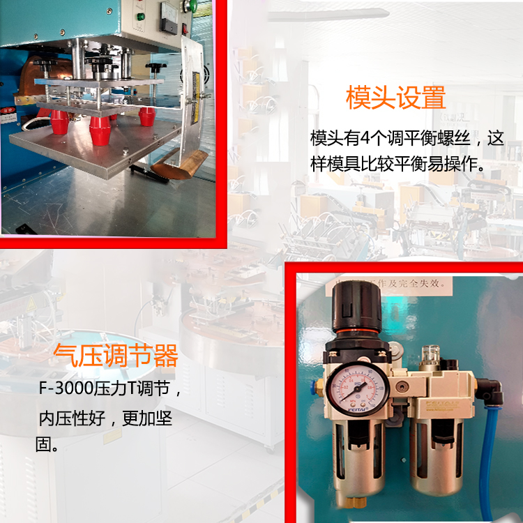 奇趣蛋吸塑包裝機(jī)加壓方式:氣壓直壓式。氣動(dòng)控制,操作簡(jiǎn)單方便,人工放料及取料,熔斷、切斷完美快捷效率高,工藝簡(jiǎn)單。