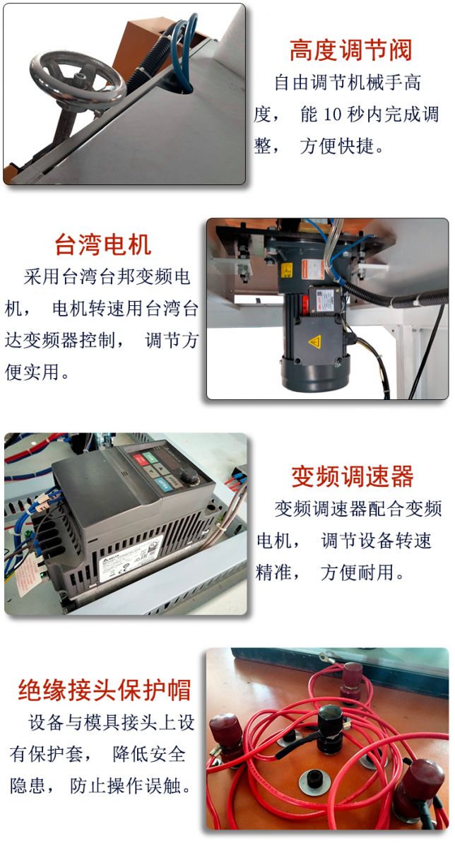 3、自動紙卡吸塑吊卡機體結(jié)構(gòu)堅實、可靠、耐用。(氣缸、壓盤導(dǎo)桿、變壓器加大)。