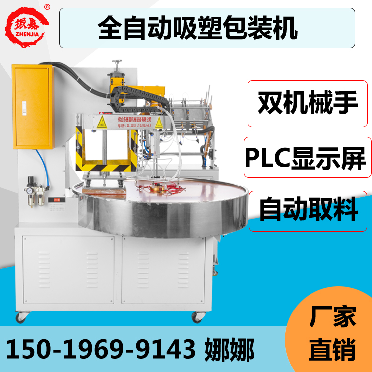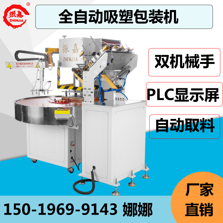 五金配件吸塑包裝機型號為ZJ-50A五金配件吸塑包裝機(雙機械手),全機均為全自動化帶有自動取料及自動取紙卡雙機械手,工作臺可以放置模具數(shù)量為:4套模具,此新一代雙機械手紙卡封口機,專為替代傳統(tǒng)手動吸塑封口機和鏈條式吸塑封口機而設(shè)計