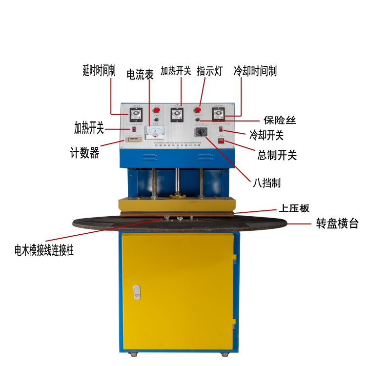 1.螺絲吸塑包裝機(jī)操作簡(jiǎn)便:只要選擇延時(shí)時(shí)間、加熱時(shí)間與冷卻時(shí)間及加熱電流轉(zhuǎn)換檔位,手動(dòng)旋轉(zhuǎn)圓盤工作臺(tái),機(jī)器的延時(shí)系統(tǒng)、加熱系統(tǒng)及冷卻系統(tǒng)便會(huì)自動(dòng)操作,完成封合過(guò)程。